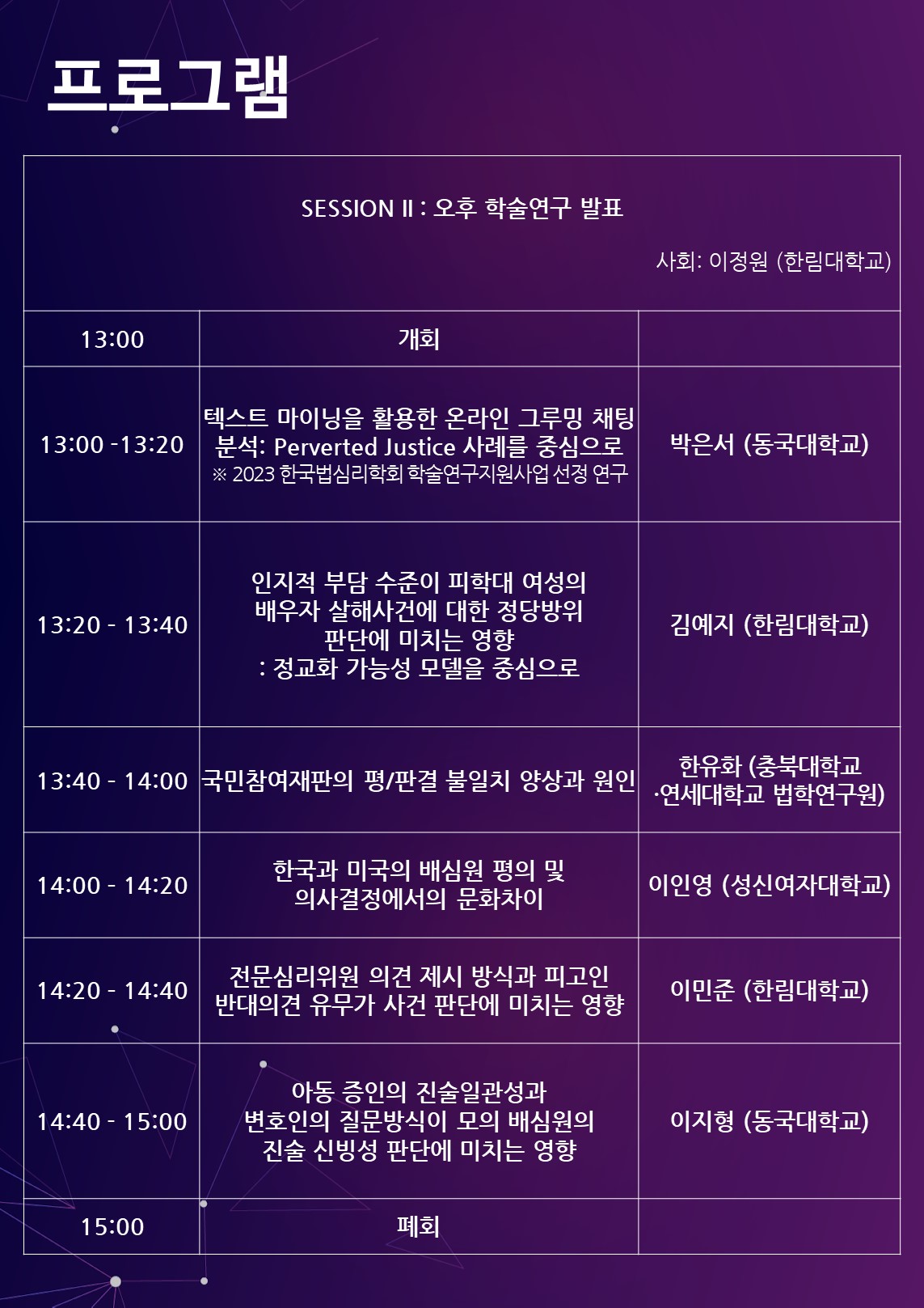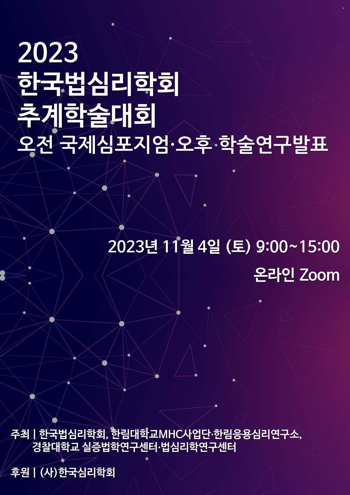 2023 한국법심리학회 추계학술대회 오전 국제심포지엄 및 오후 학술연구 발표 안내