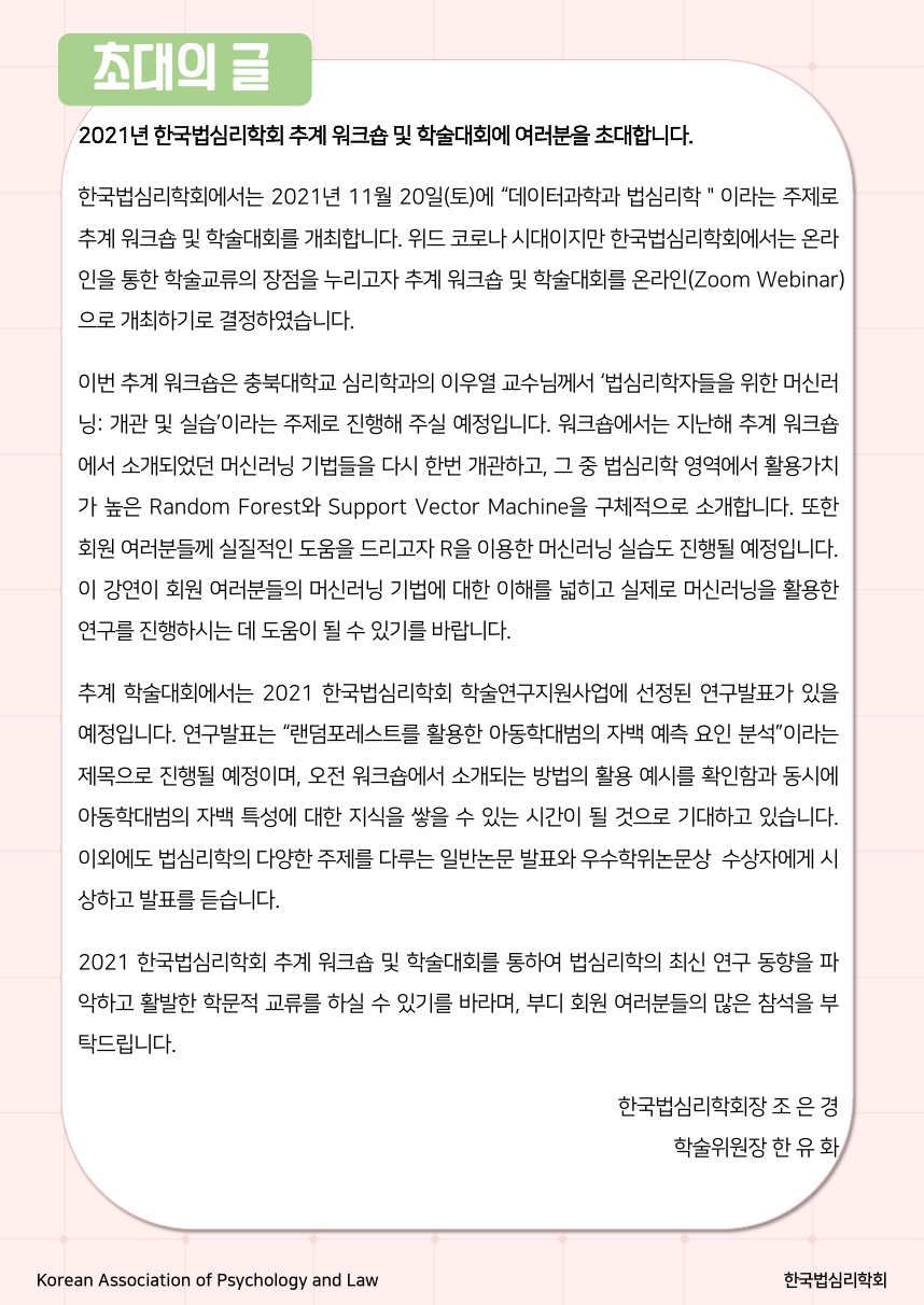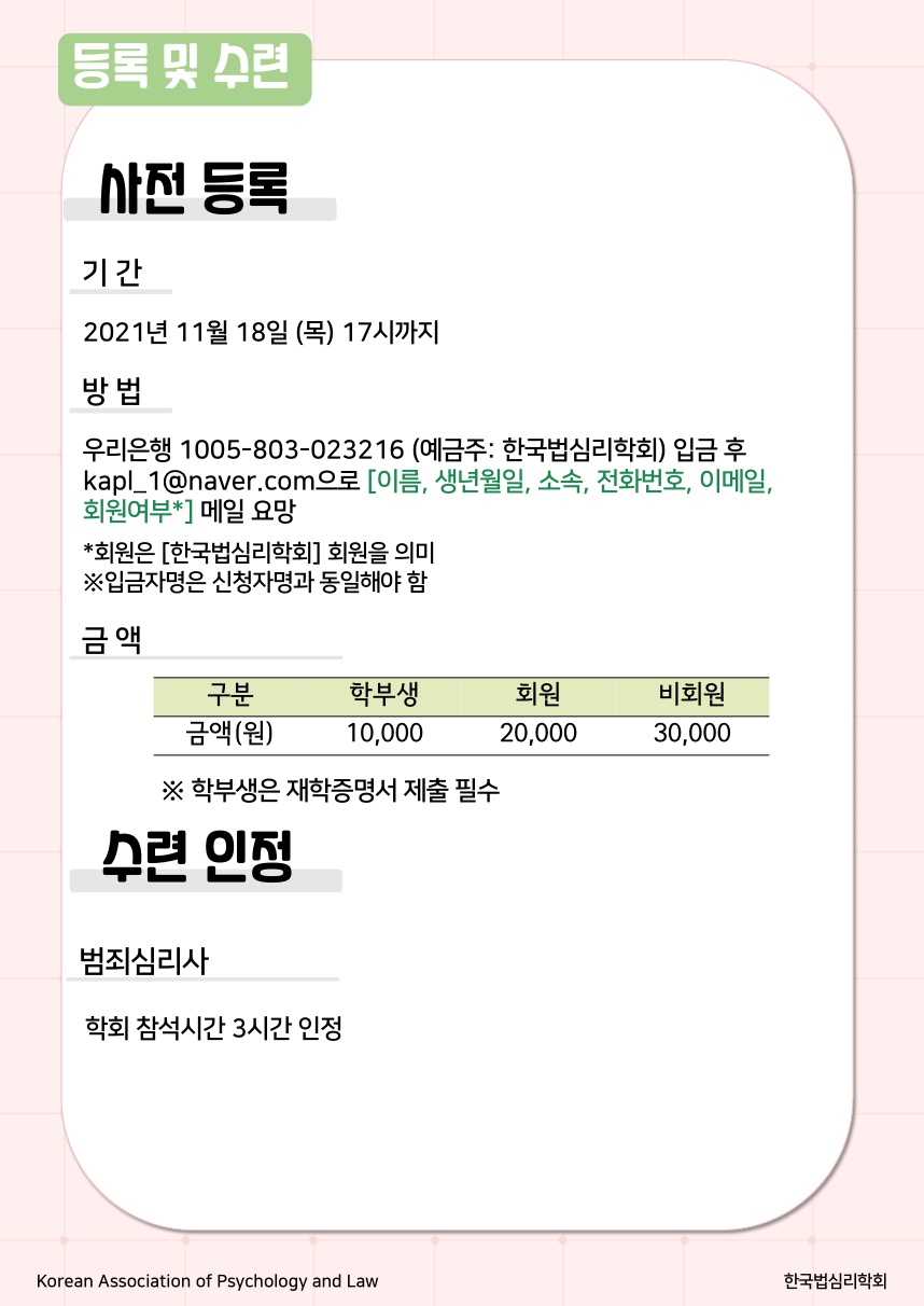 2021 한국법심리학회 추계학술대회 세부 일정 및 사전등록 안내